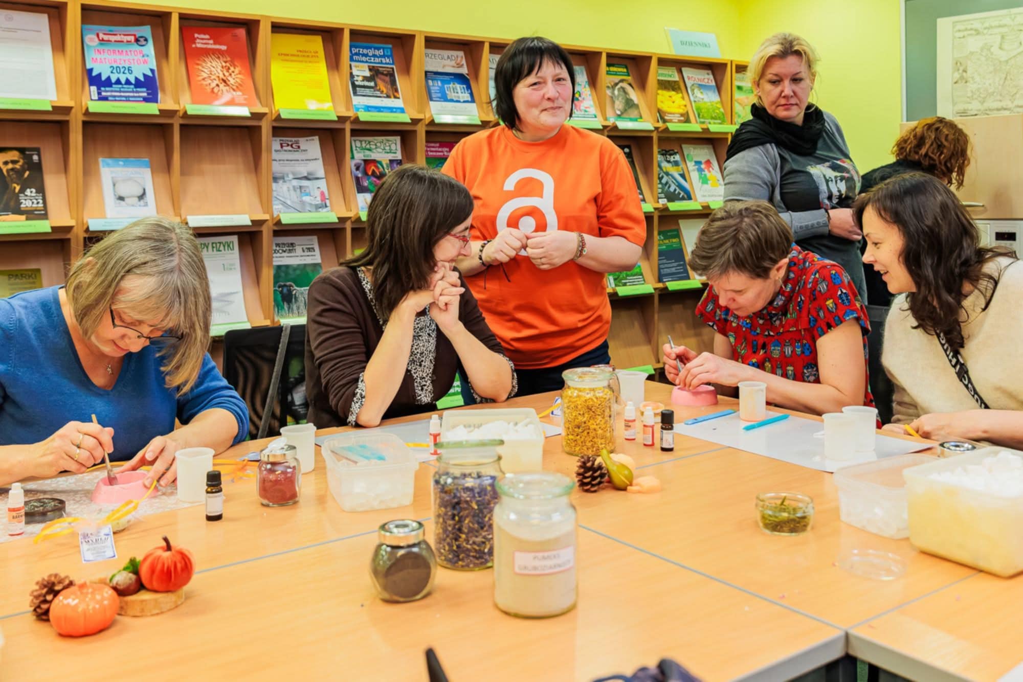 Uczestnicy warsztatów wykonają pachnące mydełka glicerynowe z dodatkiem pumeksu i kwiatów. Powstaną one w kolorach białym i pomarańczowym, symbolizujących ideę Open Access. Gotowe mydełka z logo OA będą wyjątkowym upominkiem i jednocześnie kreatywną formą promocji Otwartej Nauki.